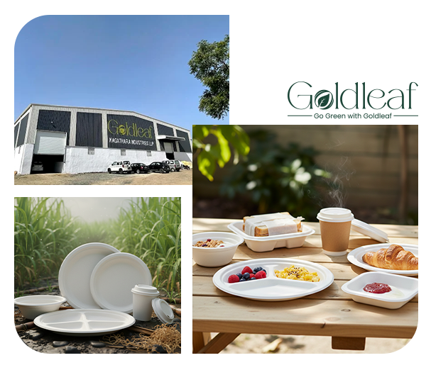 Goldleaf India Là nhà sản xuất sản phẩm bã mía đáng tin cậy, cung cấp các giải pháp đóng gói thực phẩm và bộ đồ ăn thân thiện với môi trường. Được làm từ bột mía tự nhiên, sản phẩm của chúng tôi có khả năng phân hủy sinh học, có thể phân hủy và an toàn với lò vi sóng.