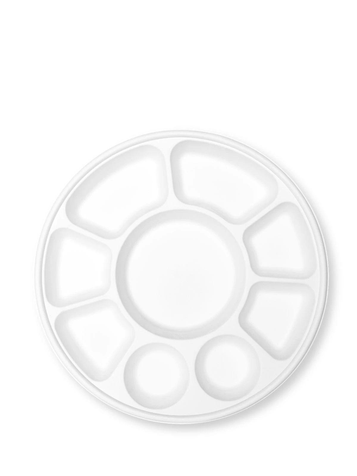 9 CP Round Plate will be used to serve various food products on one plate. This round plate is manufactured using sugarcane bagasse which provides a smooth finish and easy form to be able to serve any meal. It is designed in a nine-compartment format which means it can be used in as many as three items as thalis, combo meals and multi-item in restaurants, canteens, food courts, and events. The circular shape permits the balance in placing food and makes it an appropriate option in presenting meals in an organized and hygienic way.